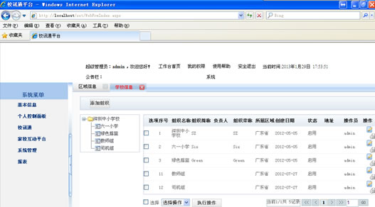 B/S客户端平台直接通过网站形式访问,进行添加区域、学校、学生等相关人员信息,可以查看刷卡信息报表。